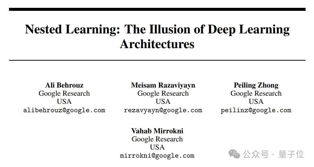 这篇文章题为嵌套学习:深度学习架构的幻象(Nested Learning: The Illusion of Deep Learning Architectures),在圈内被誉为是“Attention is all you need”V2。