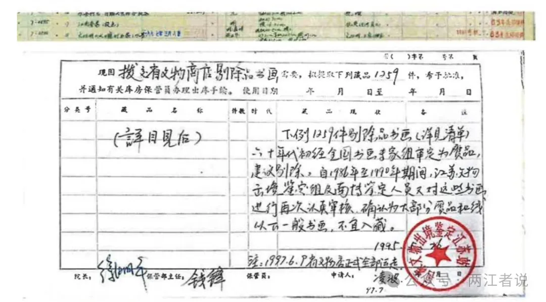1997年5月8日,被认定为赝品的《江南春》图卷退出南京博物院馆藏记录(受访者供图)