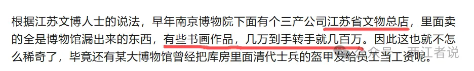 上述采访稿很好的一点就是实锤了我上面一篇文章的判断,就是南京博物院在90年代把画作移交给了自己的三产公司江苏省文物总店,但是我确实还是保守了,我只敢说几万的作品转手几百万,却不敢想6800的的作品转手8800万起拍。