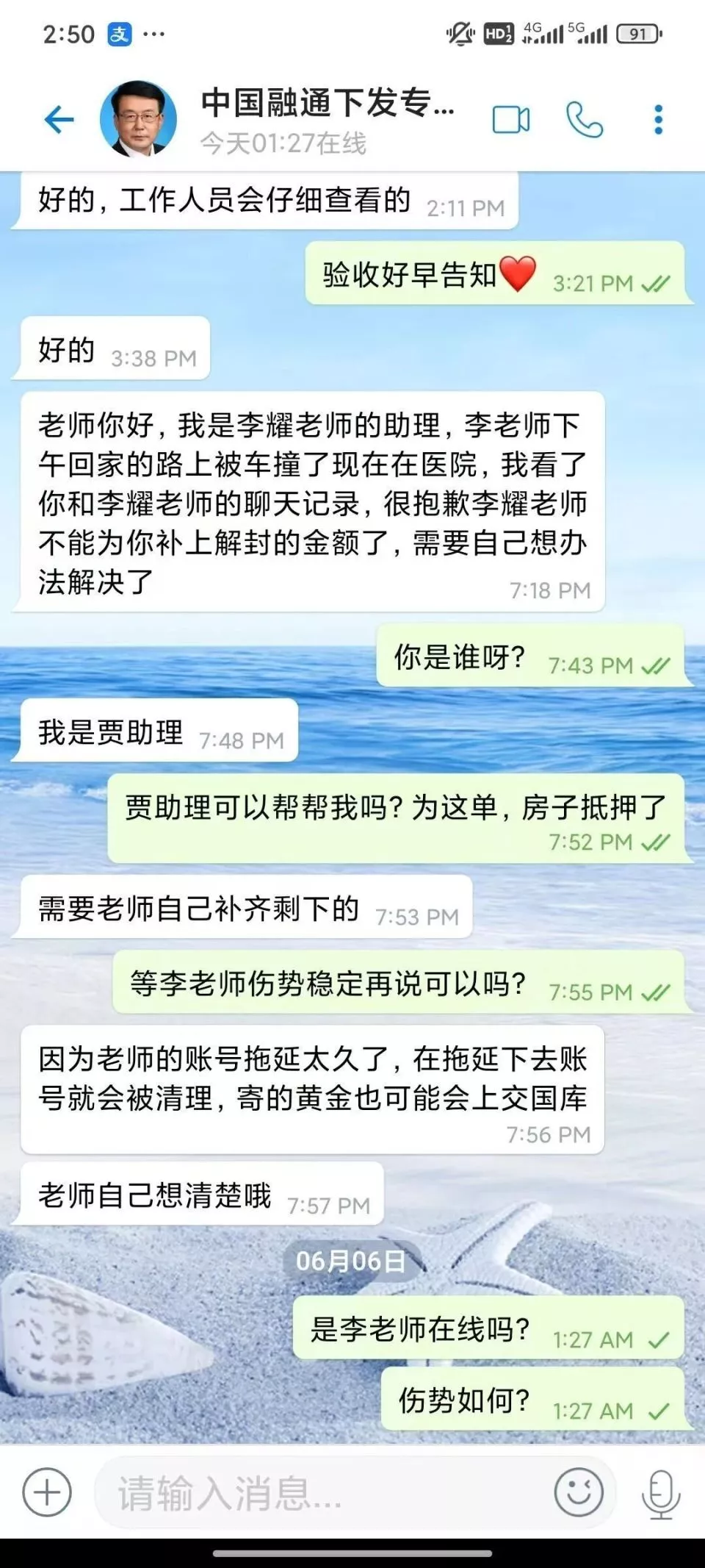 王季拿不出钱,另一个“扶贫款”群的“下款专员”开始向她招手,承诺“这边提现不用交税”。王季和朋友又凑了20克黄金寄出。这次依然没能提现,客服的理由是“银行卡号填错”,要交五万解冻金或等值的黄金。