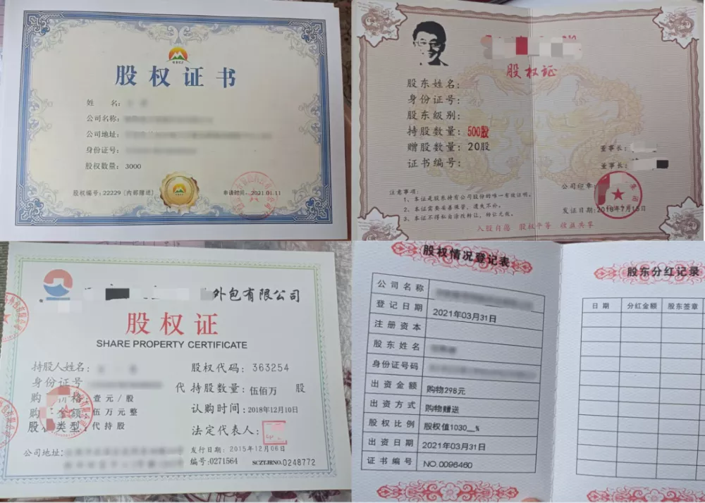 范君花了很多时间才摸清这几起事件的来龙去脉,而这或许只是王季参与“投资项目”的冰山一角。家里的一个箱子,装满各种她签写的“投资股权合同”“虚拟数据购买合同”,每张合同投资都是十万起步,还有好几抽屉“五行币““假黄金”,以及连磁条都没有的“银行卡”。