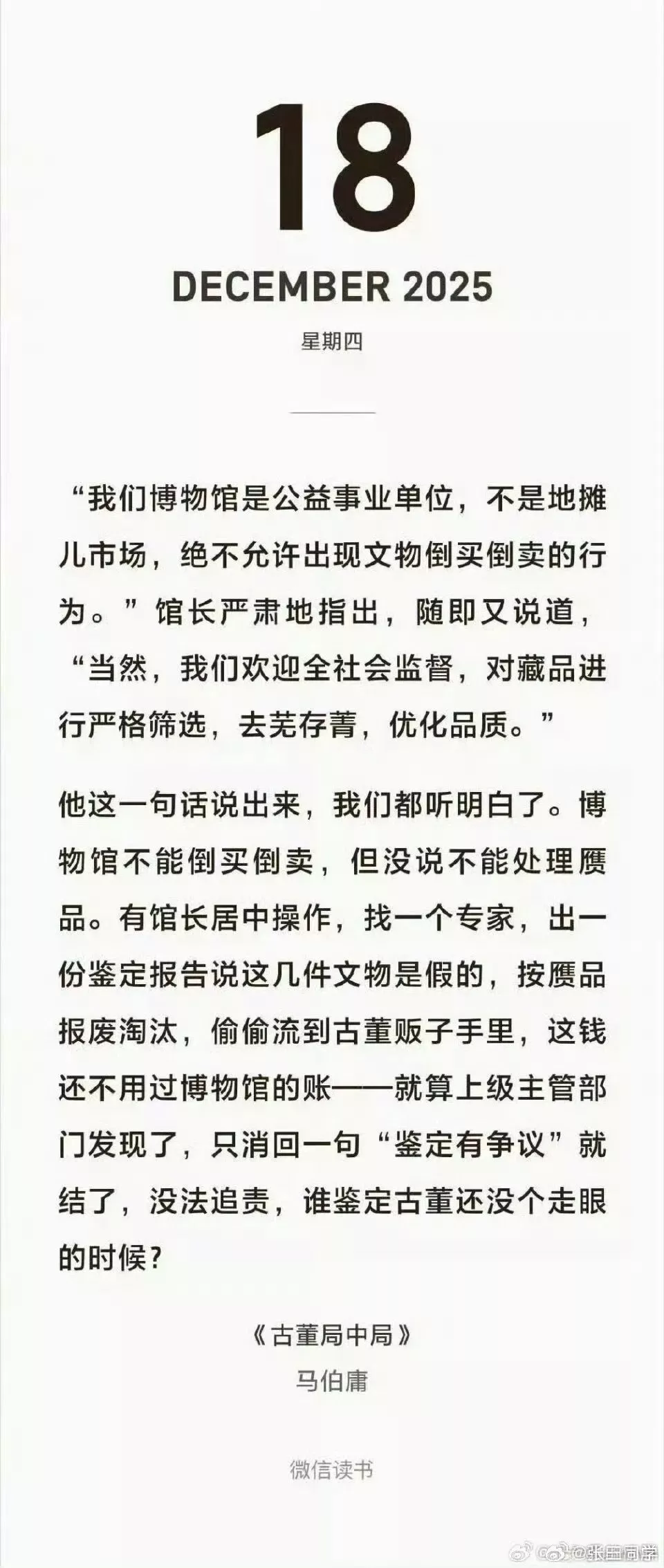 还有一则留言是说作者说的这些都是臆测,博物馆也有着监督流程,什么文物局啥的也不是吃干饭的。
