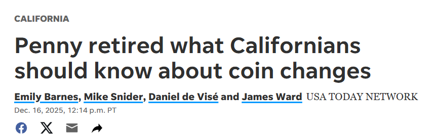 在流通了两个多世纪之后,美国铸币局已正式铸造出最后一枚1美分硬币。这一举措标志着美国人——包括加州居民——在现金使用方式上的一次历史性转变。