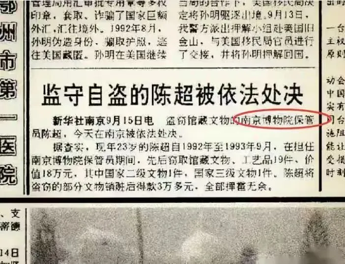 23岁的南京博物院保管员陈超,因窃取馆藏文物19件,其中国家二级文物1件、三级文物1件,被“依法处决”。