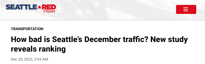 共有两个西海岸城市跻身前十,其中一座城市更是位列12月美国交通拥堵最严重城市前五名。那么,西雅图的最终排名如何?