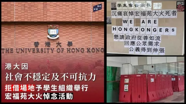 港大拒绝学生悼念大埔火灾法广