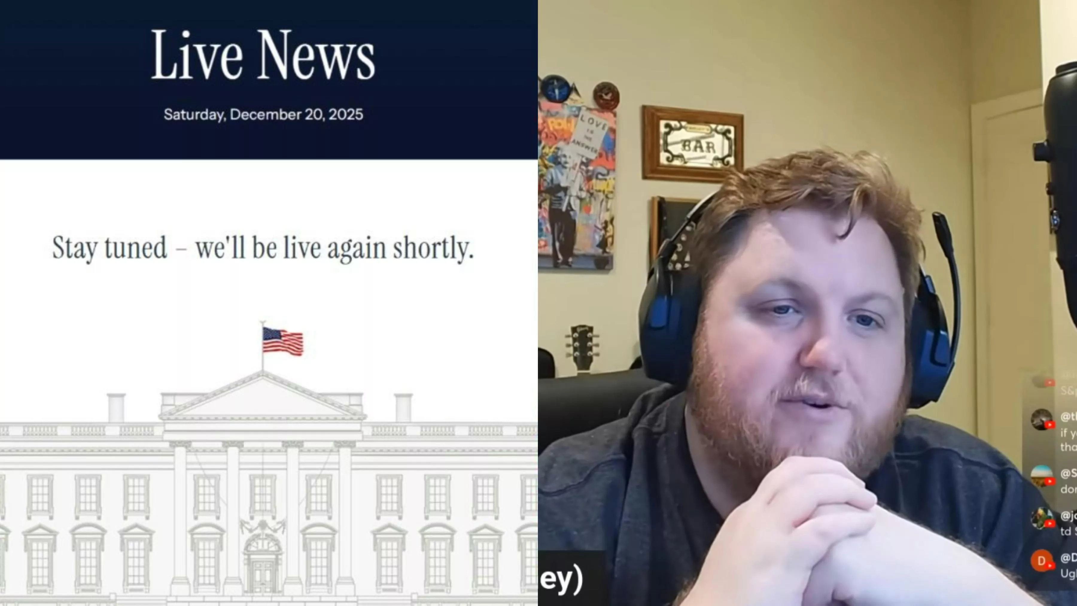 这段直播画面出现在 whitehouse.gov/live 页面,该页面平时用于播放美国总统的公开谈话或即时活动。
