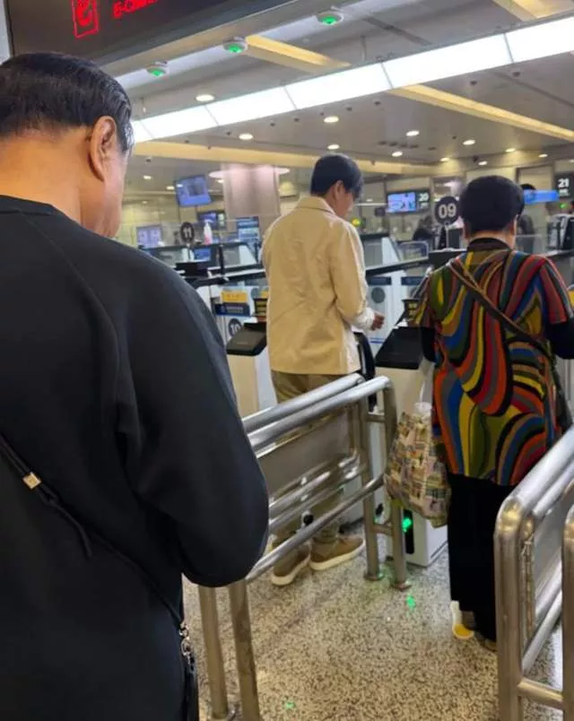 凌晨五点就到机场的伊能静一家,机场人不是很多,一家五口顺利办理登机手续。偶遇照中,伊能静披散一头黑色长发,身着藏蓝卫衣搭配浅色牛仔裤,拎着行李箱的她站在女儿身后耐心等待。