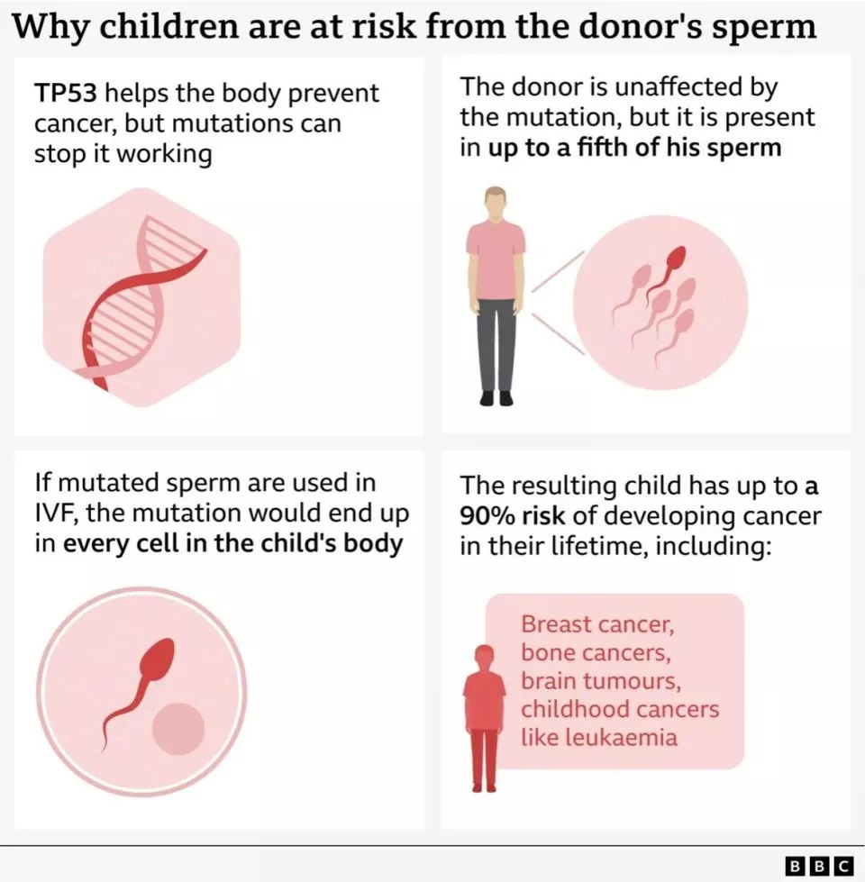 Donor7069捐赠的精子中携带着TP53突变,受精后的孩子一生中患癌风险高达90%