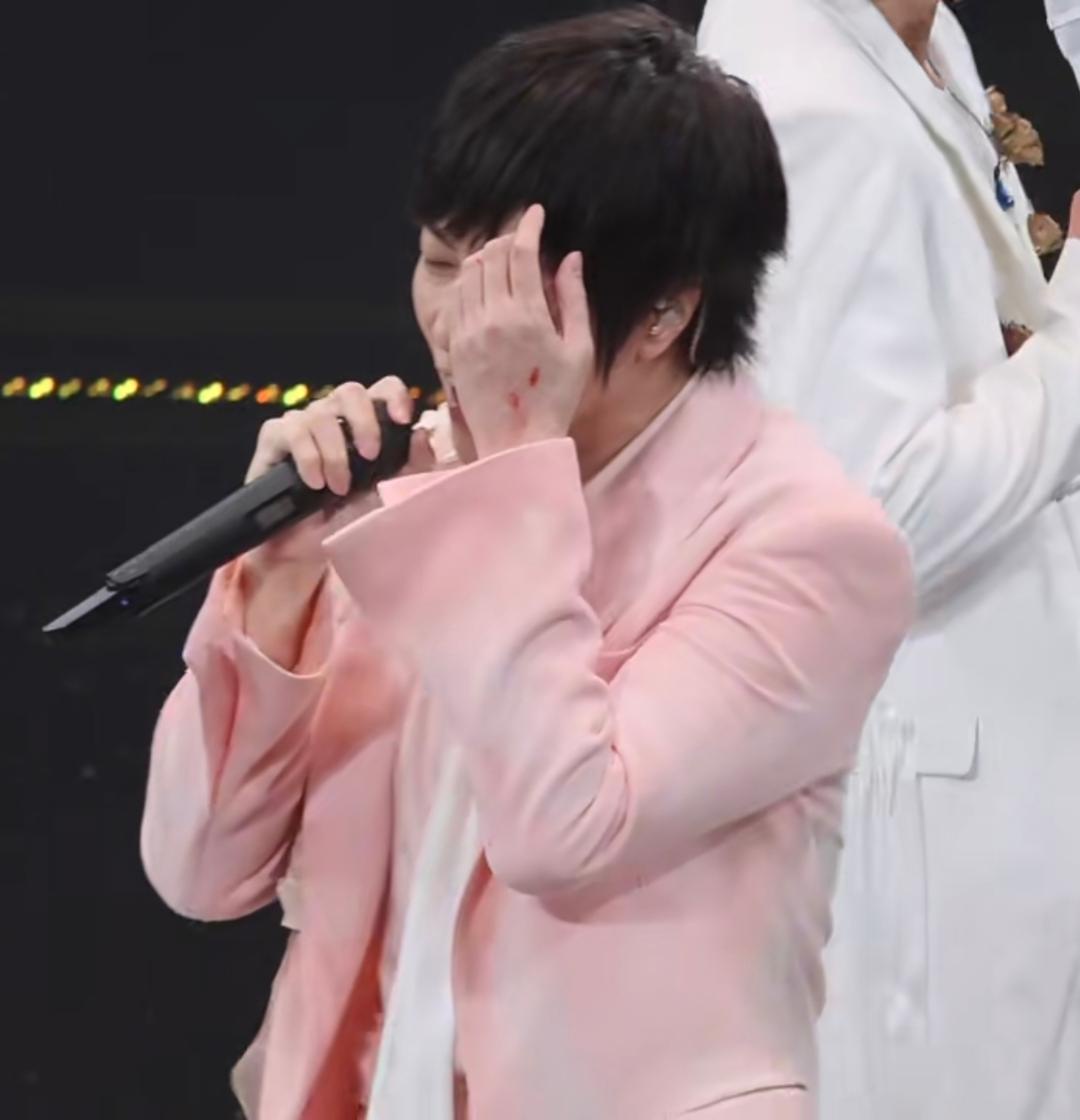 随后有多名工作人员上前查看他的状况,阿信在舞台下稍作整理之后,继续走上舞台演唱《离开地球表面》。有网友发布了现场视频,视频中能看到阿信手上有明显的伤痕和血迹。