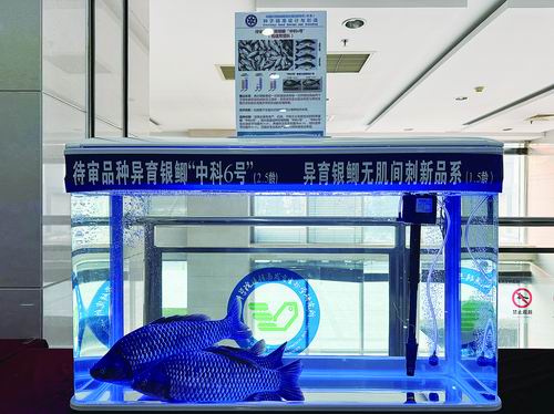 这几尾鱼是中国科学院院士、中国科学院水生生物研究所研究员桂建芳团队千里迢迢从武汉带来的“高科技”新品系。“大一点的是两岁半的‘中科6号’,能够让疱疹病毒的致死率降低七八成,而且它的肠道更长,消化吸收率高,长得快,更节粮。小一点的是一岁半的肌间无刺银鲫,能够让未来吃鱼无需小心翼翼。”桂建芳向《中国科学报》介绍说。