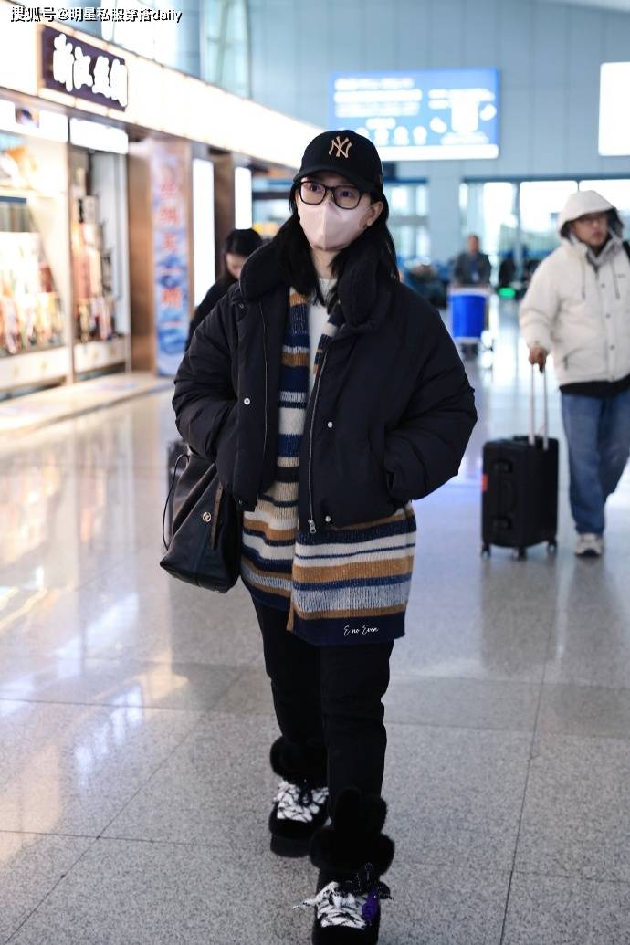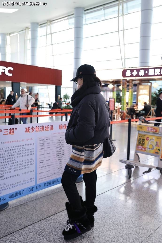 尤其是在机场上被偶遇,也能把黑色羽绒服穿出少女感!人家搭配一条条纹针织围巾,和黑色棒球帽,就等你穿出年轻活力!