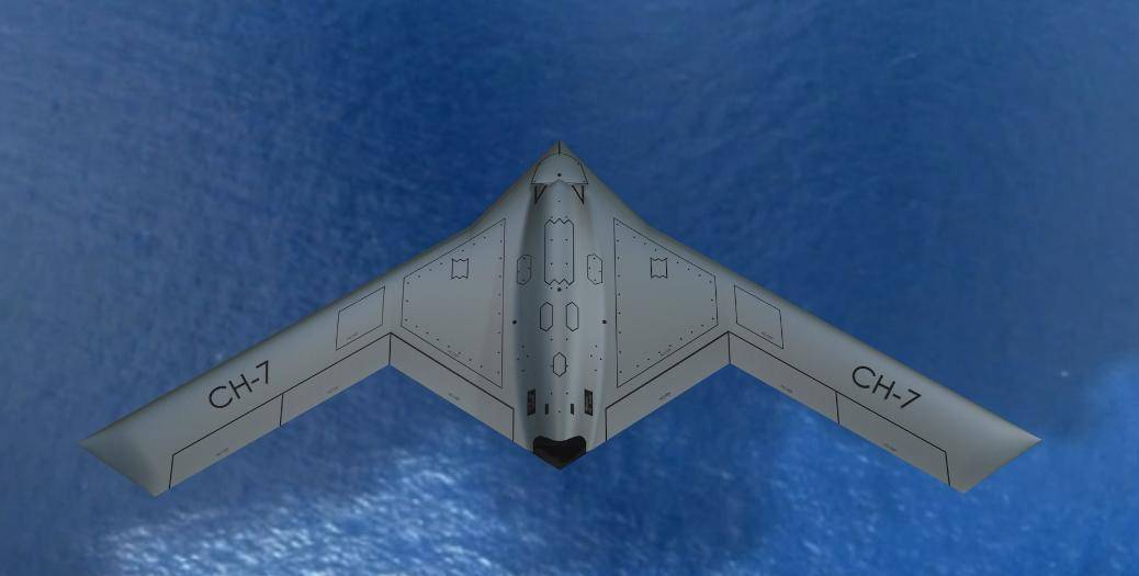 彩虹-7的造型十分科幻,采用独特的飞翼布局,机身和机翼完全融合,没有传统的尾翼和暴露的尾喷口,就像一把折刃的飞镖。