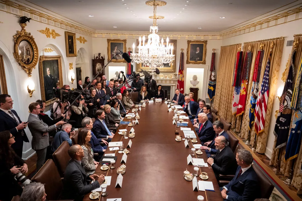 特朗普在白宫召开内阁会议。在其第二个任期内,特朗普身边都是对他忠心耿耿的拥护者。
