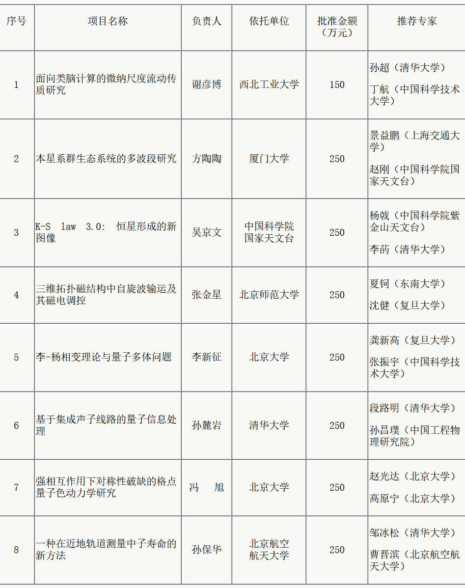 2025年度数理科学部专项项目(专家推荐类原创探索计划项目)资助结果公示