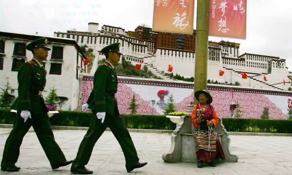 在西藏自治区拉萨市布达拉宫前随处可见荷枪实弹的警察,该图摄于2008年6月20日。(图片来源:Getty Images)