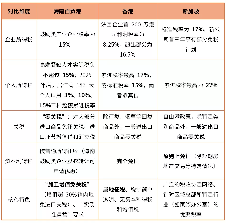 外部的新加坡和香港是最大的竞争对手,两者都是零关税的成熟自由港,前者是位处绝佳地势的全球供应链枢纽,后者是把握人民币出海关键要塞的国际金融中心。