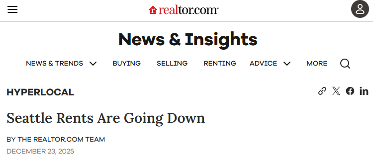 租金回落表明,租客在议价上比市场高峰期更有优势,尤其是在西雅图的租房清单中。然而,租金仍处于高位,这意味着对大多数希望在该地区定居的人来说,这种缓解是渐进性的,而非戏剧性的。
