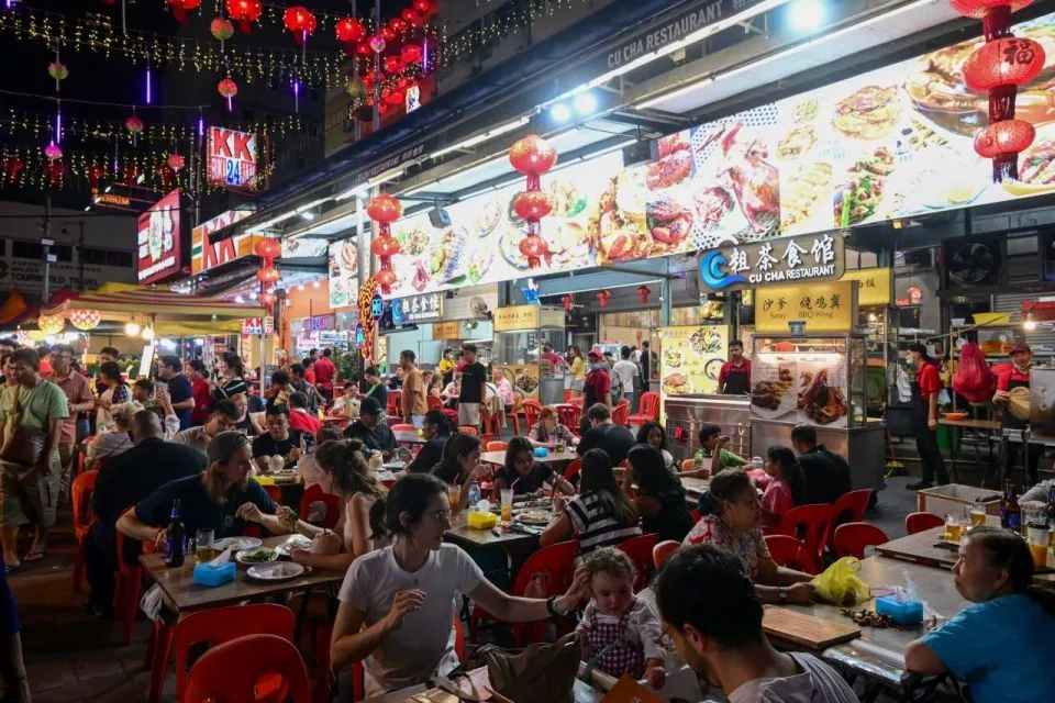 当地时间2025年4月13日,马来西亚吉隆坡的一处夜市,主要经营各类中国小吃。(视觉中国/图)