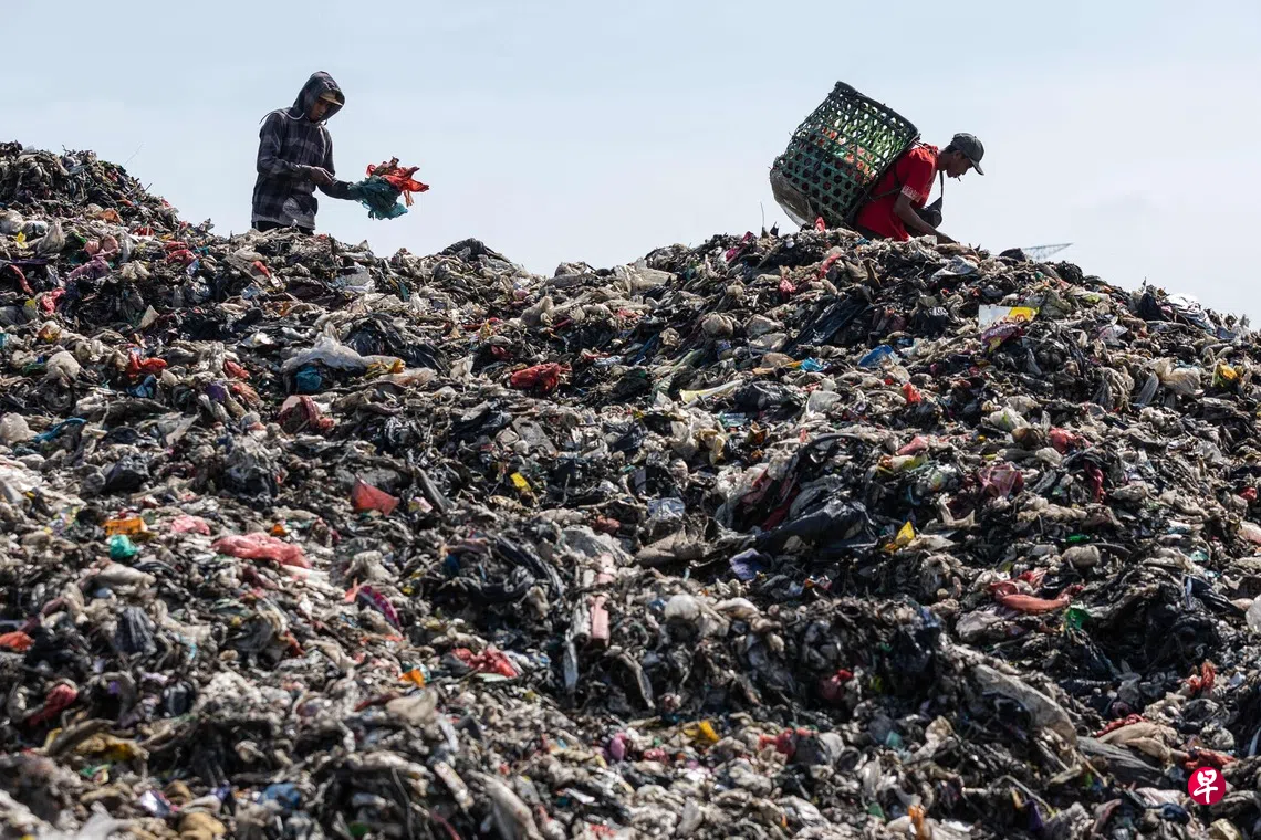 印尼多地的垃圾填埋场面临超负荷运行和环境污染的棘手问题。图为印尼万丹省一个垃圾填埋场,当地计划不久后建造可将废料转化能源的垃圾焚烧发电厂。 (法新社)