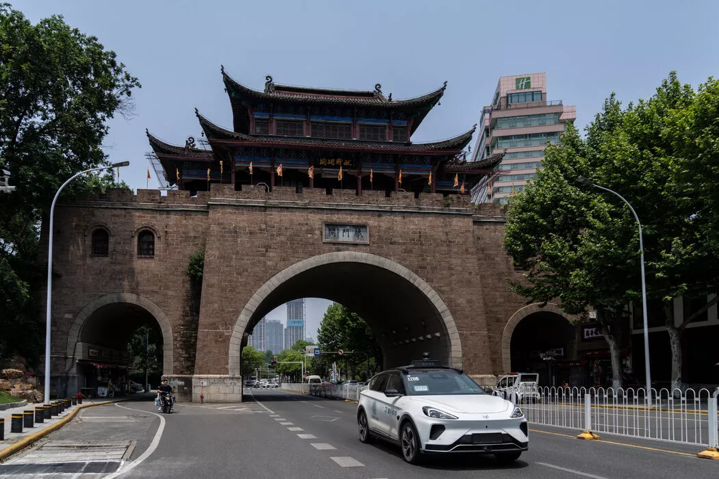 武汉的阿波罗无人驾驶出租车。武汉是中国十多个正在测试无人驾驶出租车的城市之一。