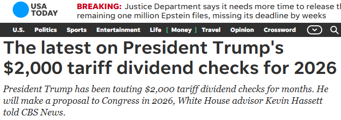 总统川普希望在2026年向美国民众发放每人2000美元的“关税红利”支票,但最终的决定权却在国会。