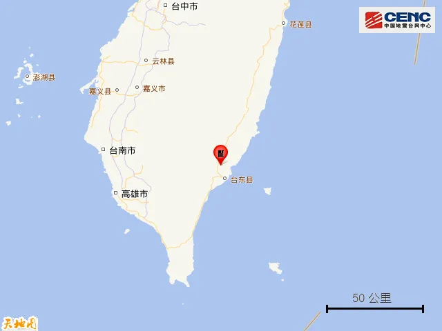 据中国地震台网正式测定,12月24日17时47分在台湾台东县发生5.8级地震,震源深度10公里,震中位于北纬22.86度,东经121.12度。