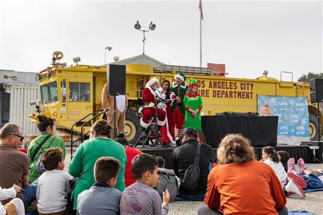 圣诞老人日前惊喜现身洛杉矶国际机场(LAX)与范奈斯机场(VNY),参加由洛杉矶世界机场管理局(Los Angeles World Airports,简称 LAWA)主办的年度「Santa Fly-In」活动。(LAX提供)