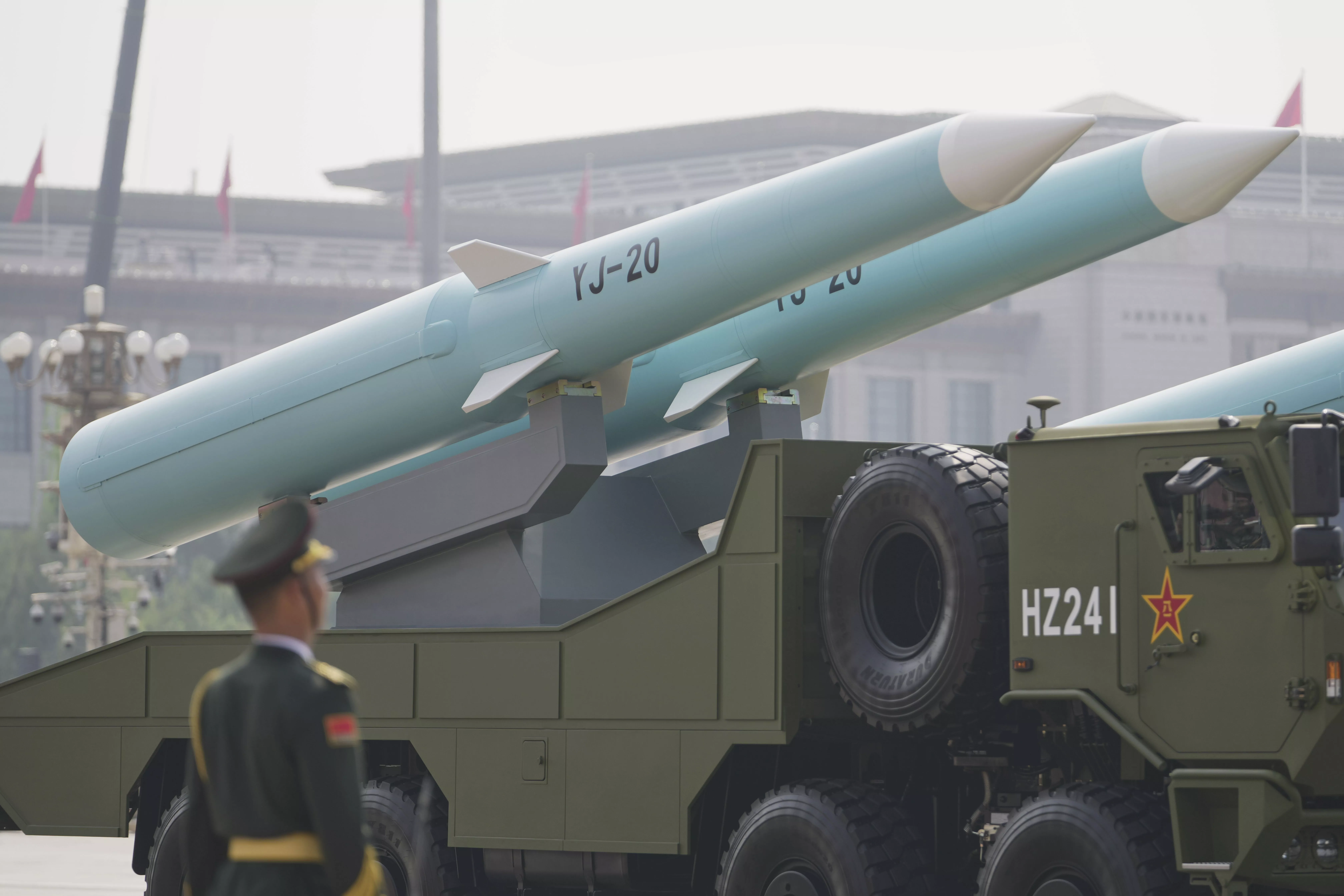 ▲中国研制潜/舰射高超音速反舰导弹「鹰击-20反舰导弹」(YJ-20)在93阅兵亮相。