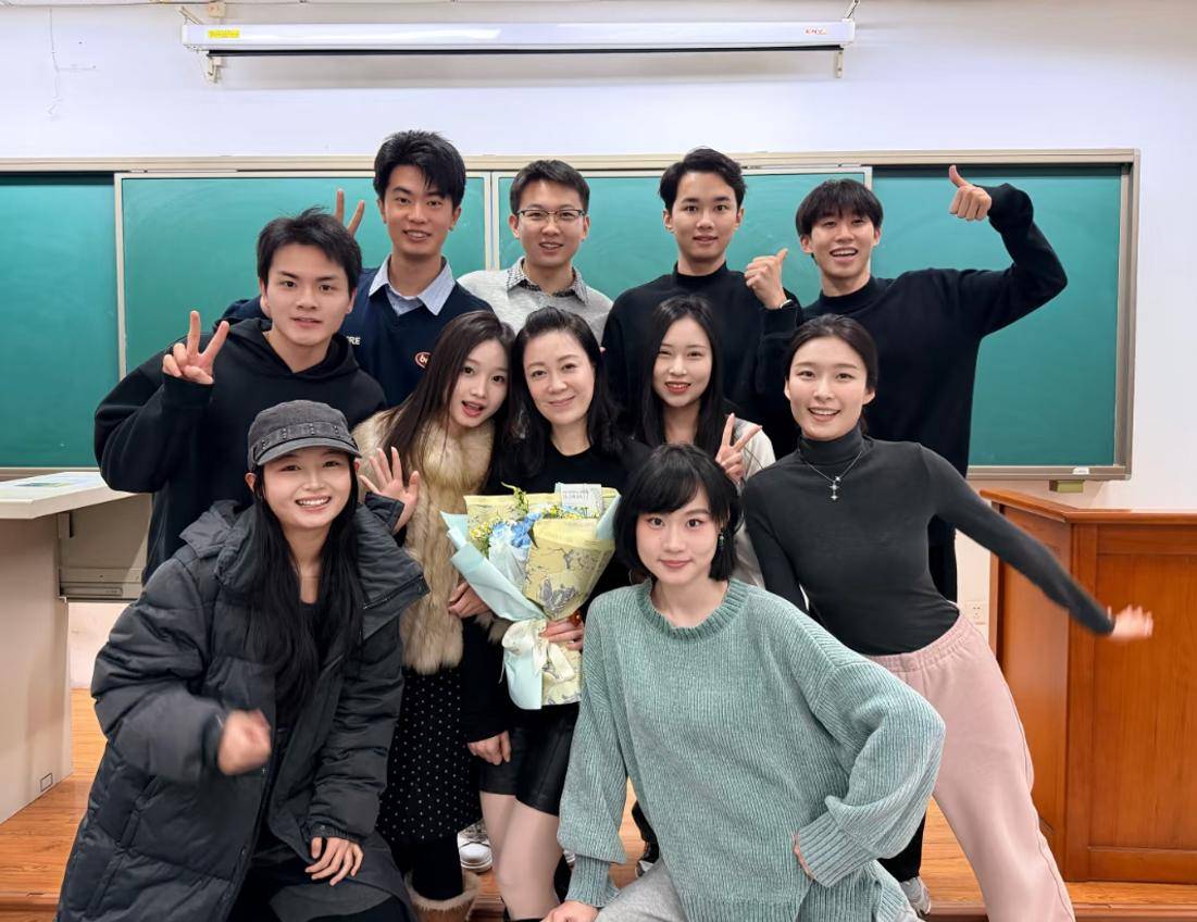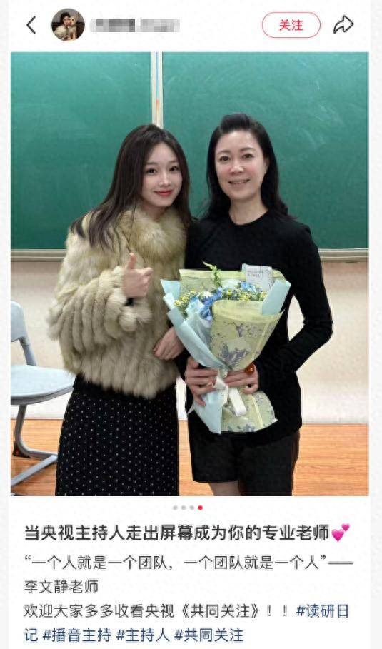 近日,有网友分享出自己与央视主持人李文静的合照,从贴文可以获悉,日前李文静特意来到中央戏剧学院昌平校区讲课,课堂上还与一众同学一起合影。 镜头中李文静看上去依旧是温婉端庄,身穿一件简约款黑色连衣裙,气质尤为典雅,被一众学生热情簇拥,李文静手捧花束笑容和蔼,不难看出师生关系和谐融洽。 私下的李文静特别有亲和力,和学生们在一起,更像是朋友般相处,女学生还隔空亲吻她,这一幕格外温馨。