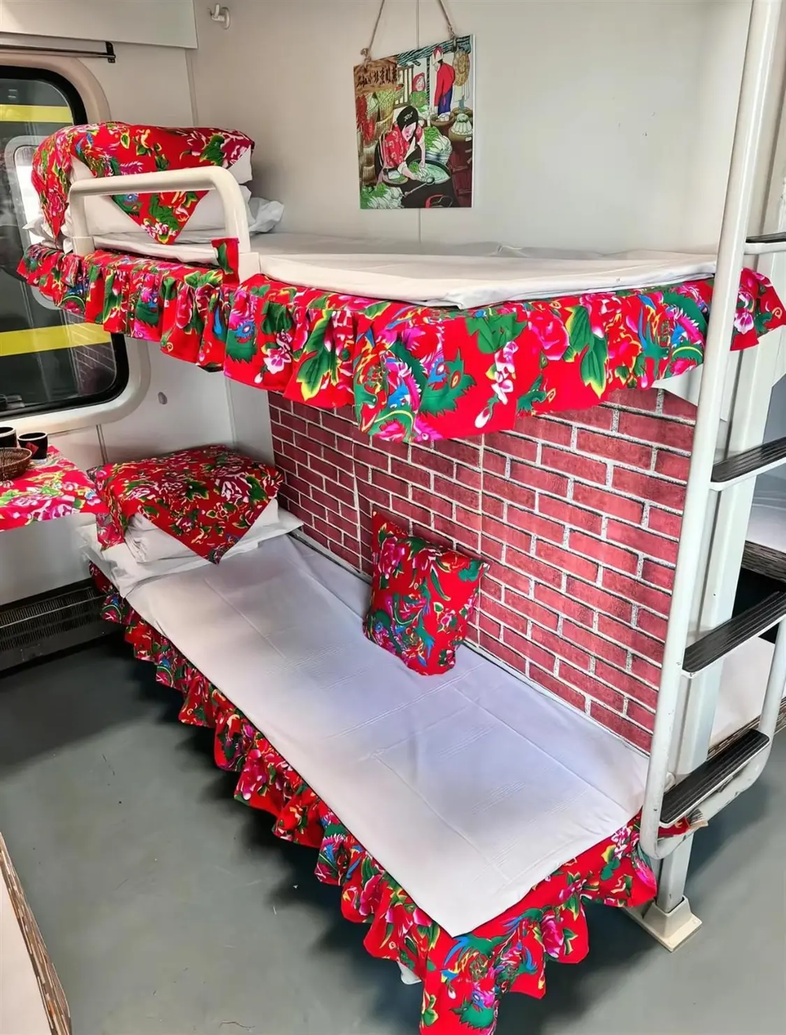 许多前往漠河旅游的乘客纷纷选择乘坐该列车,他们拍摄的视频显示,列车部分卧铺、桌子都换成大花,墙面贴上了红砖的贴画,窗户也装饰有窗花、小灯笼,置身其中,很有回到家的感觉。