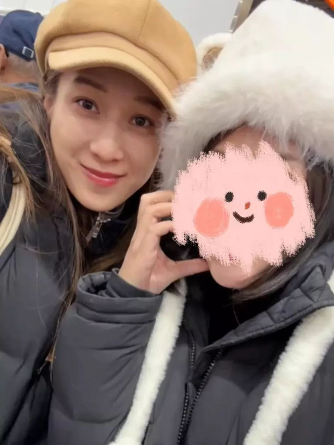 照片中,钟嘉欣戴着一顶卡其色的帽子,身穿黑色羽绒服,搭配牛仔裤,整个人看起来低调又简约。
