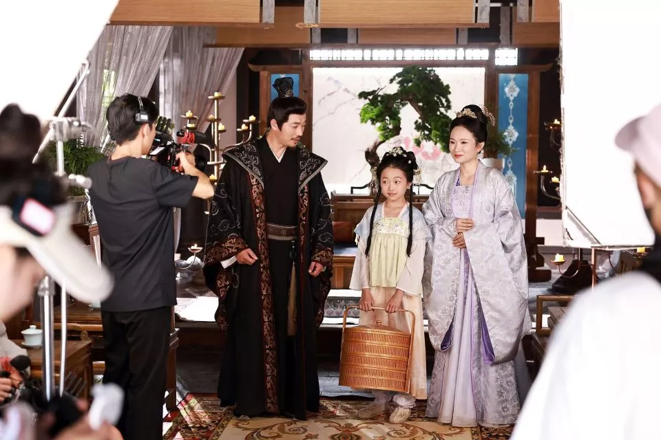 2025年8月,横店影视城“春秋唐园”内剧组正在拍摄。图源:视觉中国