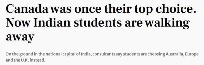 在加拿大连续收紧国际学生政策的同时,远在印度的一条“留学加拿大流水线”,正在以肉眼可见的速度停摆。