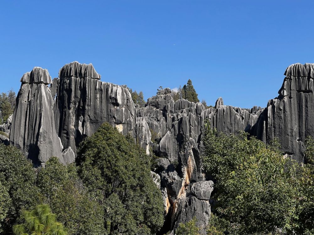 云南石林,和西双版纳一样,是国内老牌的著名景点。说来也奇怪,我们全家包括父母、兄弟、老公、甚至在美国出生的儿子都早已去过,唯独喜好游山玩水的我却偏偏从未踏足。云南我到过许多地方,昆明也去过几次,然而大名鼎鼎的天下第一奇观石林,却总是被错过。我下定决心,这一次来到抚仙湖,一定要去石林看看,亲身体会行走在岩石森林中的感觉。云南石林融雄、奇、险、秀、幽为一体,奇山怪石、气势恢宏,是中国最早的自然风景公园。早在明朝万历年间,当时的知府汪良在一次捕寇行动中,发现芝云洞。见其景致极佳,命修筑游路供人前往观赏,并撰文勒碑记胜。而石林真正成为公园,得益于“云南王”龙云。民国二十年(1031年),时任云南省主席的龙云到石林考察,对石林美景赞赏不已,题写“石林”二字刻于石壁。并开始正式建立石林公园,成立石林管理处,修建公路等设施,开始了石林作为自然公园的历史。解放后,景区得到了进一步开发。2004年,石林风景区获首批“世界地质公园”称号,2007年,列入《世界遗产名录》,也是首批国家5A级景区,享有“天下第一奇观”美誉。