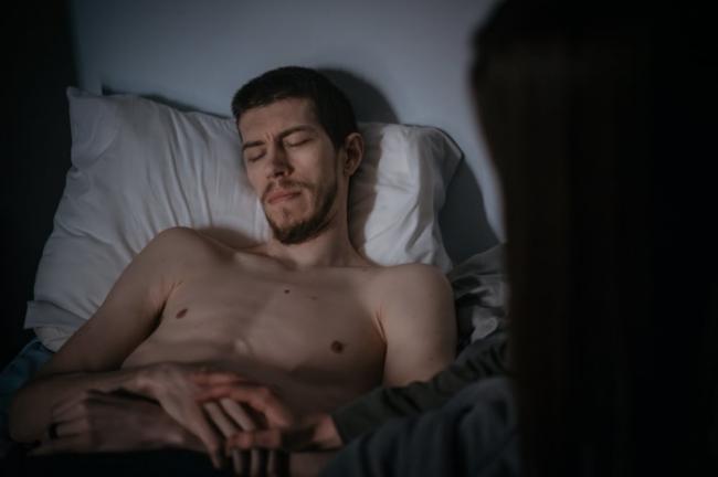 约翰・埃弗里躺在母亲家一间昏暗的房间里。他的妻子劳伦・埃弗里每隔一两天就会来看望他。.