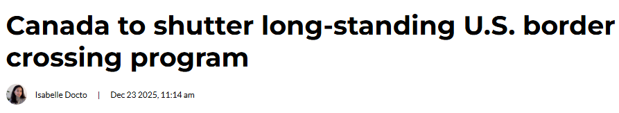 加拿大计划终止一项已运行数十年的美加边境过境项目。