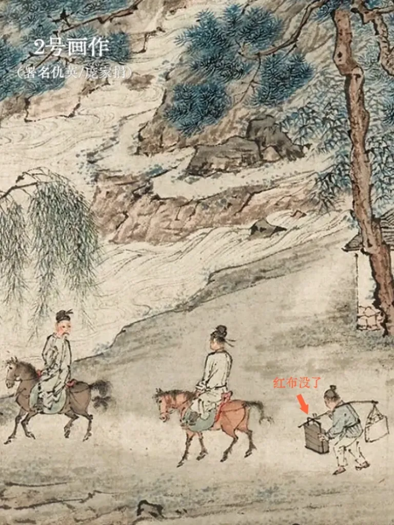 民国大收藏家庞莱臣的后人把仇英《江南春图》捐给南京博物院,结果被鉴定为假画,引发了巨大争议。万能的网友再次登场,找到多件相似的画作。我把其中一件和南博那件的局部图放在下面,请大家自己鉴别。