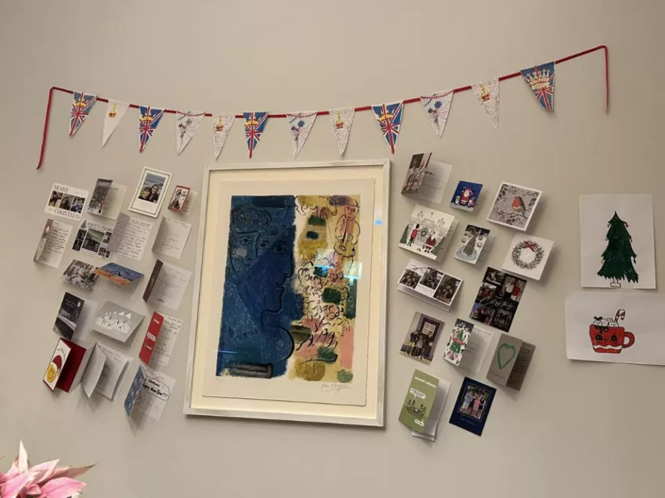 逢年过节,雇主家总会提前精心布置。圣诞节期间,一家人收到的所有贺卡都会被贴在客厅的墙上;每逢家里有人过生日,雇主也会把所有的生日贺卡摆放在架子上。书房里,孩子的照片、纸条、画作、手工等都贴满了墙面。