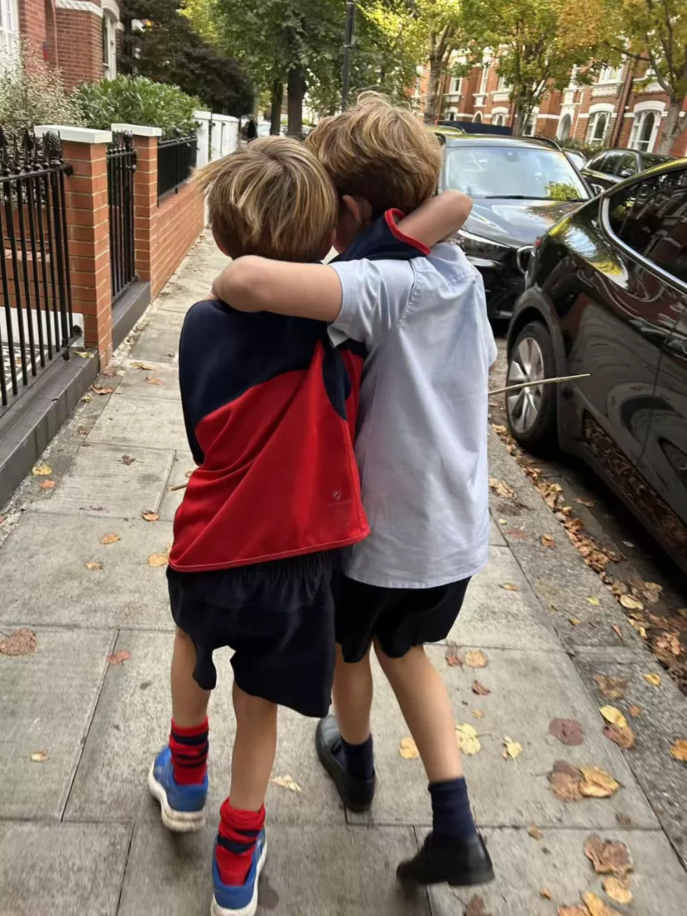 课还没上多久,他就想离开,但学校规定必须等人来接才能开门。哥哥等不及了,试图翻出围栏,一边爬一边嘟囔着:“看看,这就是英国的民主吗?”