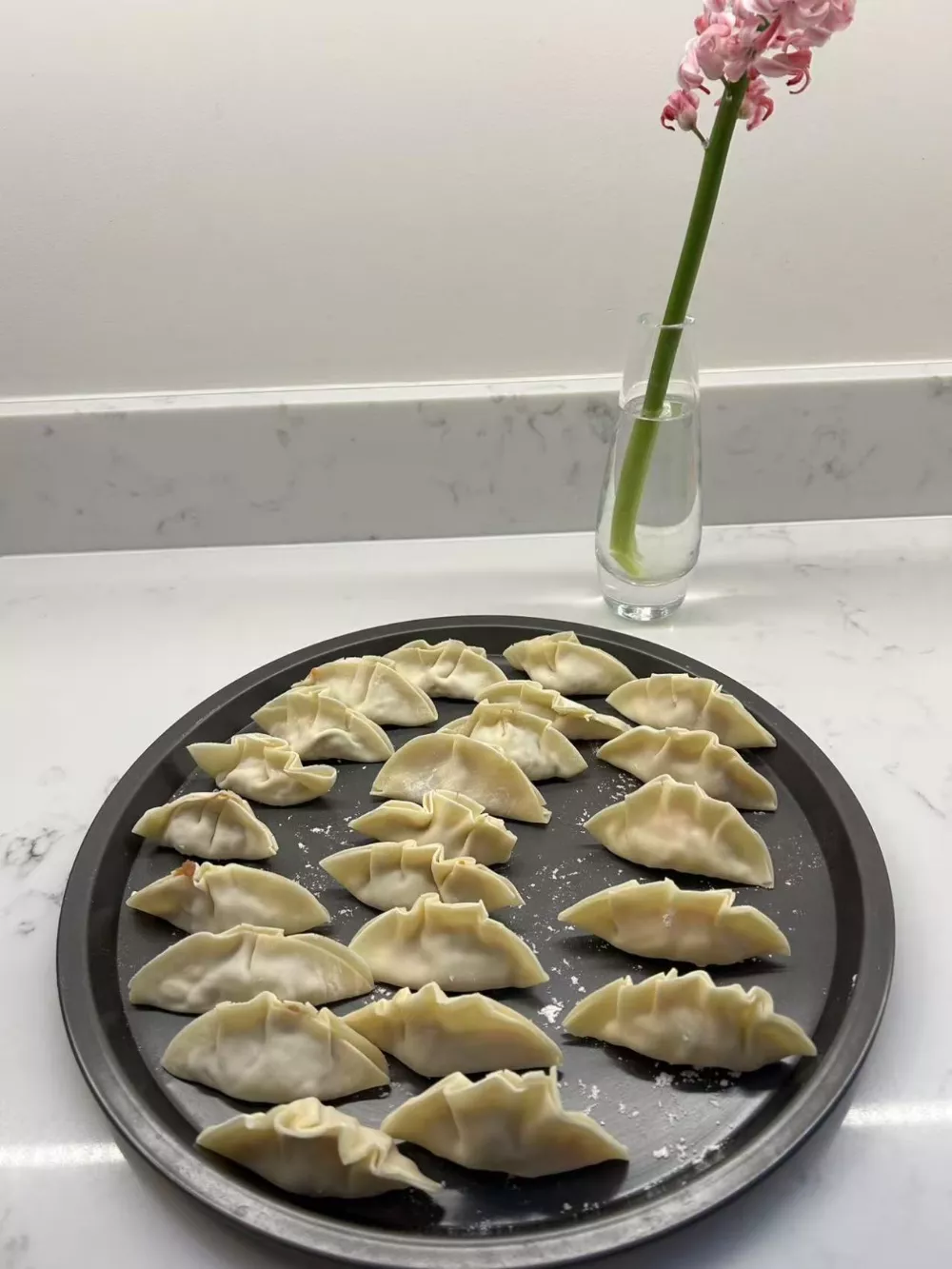 我在本地超市买了肉沫,又在中超买了饺子皮,外加一盒速冻的广式点心拼盘——饺子成败在天,预制菜却令人心安又体面。我一边连线北方朋友给我讲解,一边在网上搜各种教程。