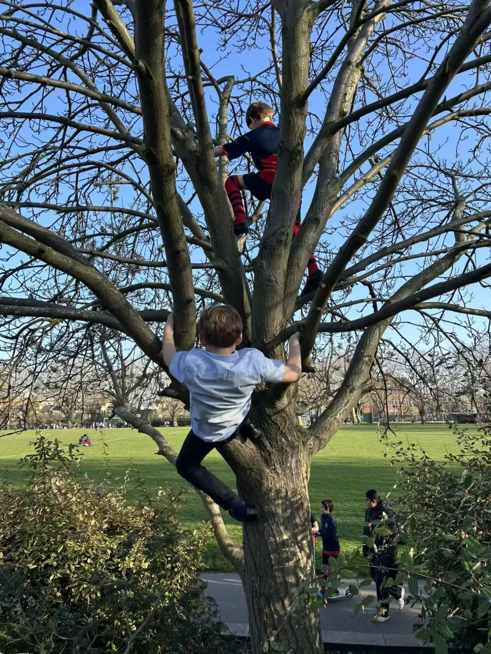 如果没有课后俱乐部,孩子们4点就放学了。雇主不想孩子整天待在家里,就让我带着孩子去公园,他们最喜欢爬树、围着池塘找树枝,然后从池塘里捞出脏东西。有一次下着小雨,雇主还是让我带着哥哥和他的同学去公园放风。
