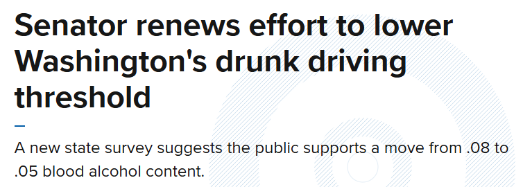 华盛顿州立法者正准备再次推动收紧酒驾标准,计划将法定血液酒精含量(BAC)上限从0.08%下调至0.05%。支持者希望该提案能在2026年立法会议期间获得通过。