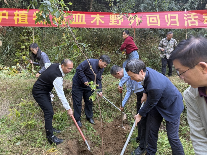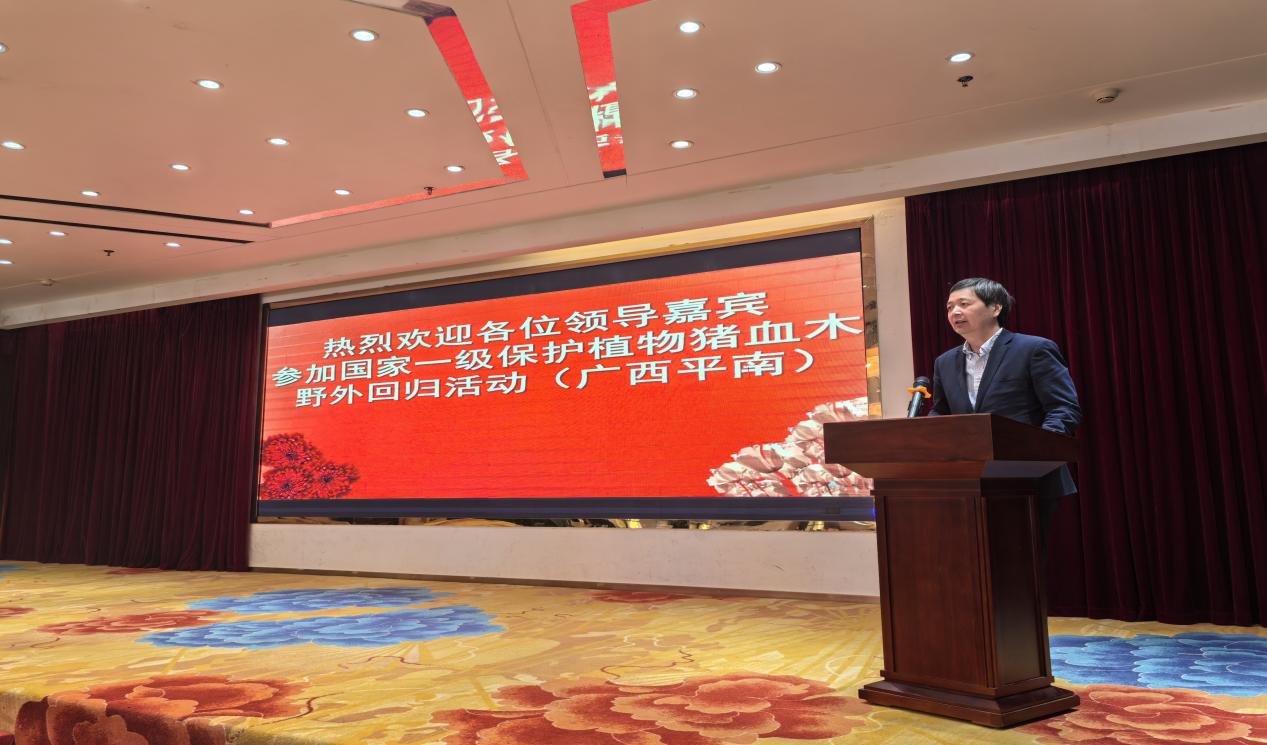 近日,由中国科学院华南植物园(以下简称华南植物园)、广西壮族自治区林业科学研究院主办的国家一级保护植物猪血木广西平南野外回归活动在广西平南举行。华南植物园研究员任海、广西壮族自治区林业局野生动植物保护处二级调研员吴练荣、广西壮族自治区林业科学研究院教授级高级工程师蒋燚、广西壮族自治区贵港市林业局副局长蒙星强等出席并致辞。
