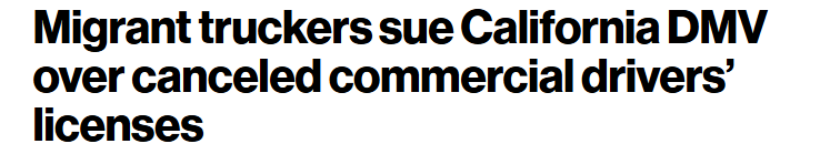 根据诉状,加州DMV于11月6日向17,299名移民司机及企业主发出通知,称其非本地居民商业驾驶执照因有效期标注错误,将于2026年1月5日失效。12月,DMV又向另外约2,700名司机发出类似信函,告知其驾照将于2026年2月中旬作废,受影响总人数接近2万人。