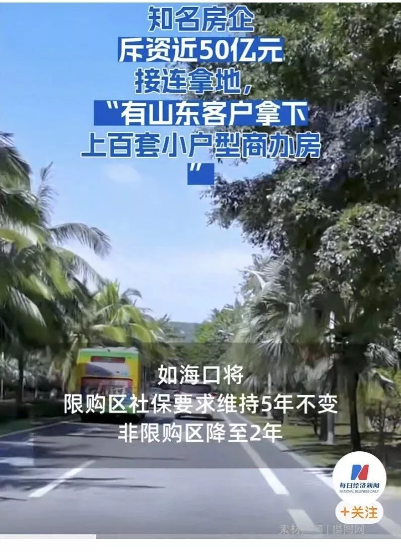 根据相关报道,中国绿发南下扫货,赶在封关前后,12月17日、18日短短两天内,斥资近50亿元拿下三亚湾、三亚市中心两块共计约252亩的地。