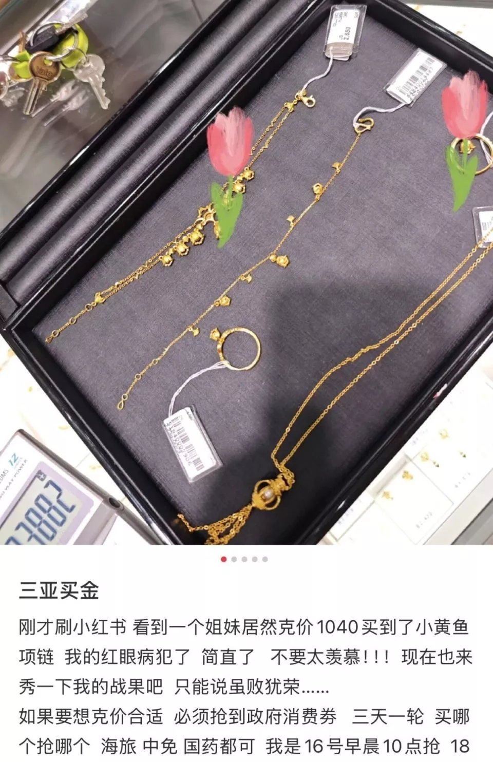 虽然封关之前,免税店里的金饰也有免税价以及政府优惠券可以领。但因为封关,各种活动、折扣的叠加下,金价进一步下探。