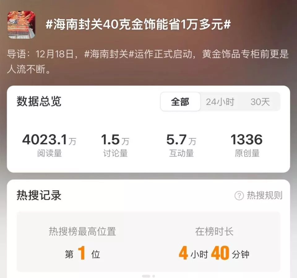 谁能想到,海南封关后,冲上第一的热搜,不是免税政策也不是消费品打折,而是: