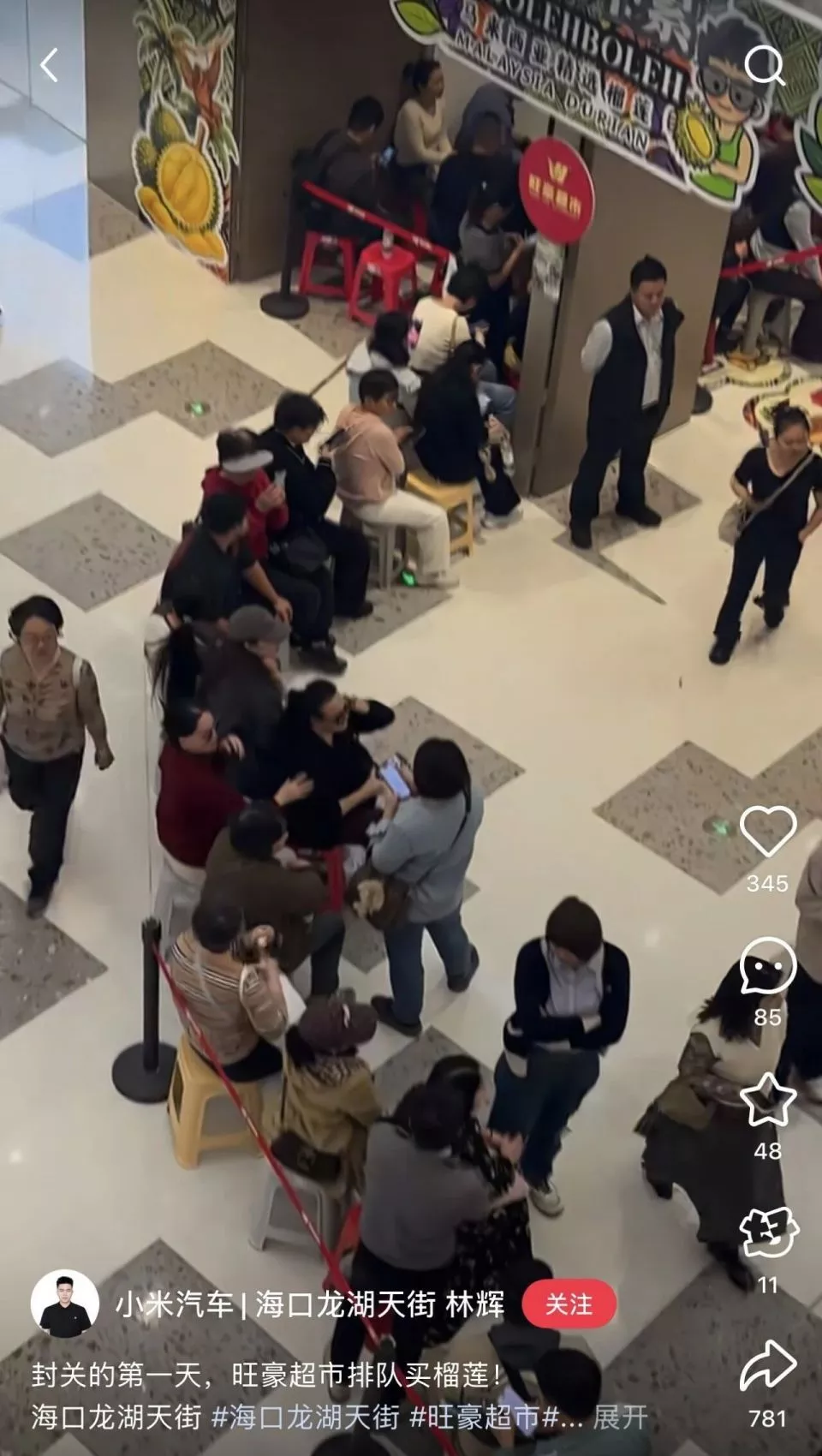 很多人不是担心“等排到的时候不会连榴莲壳都没了吧”,就是在吐槽“排了2小时,差点以为要饿死在榴莲香气里”。