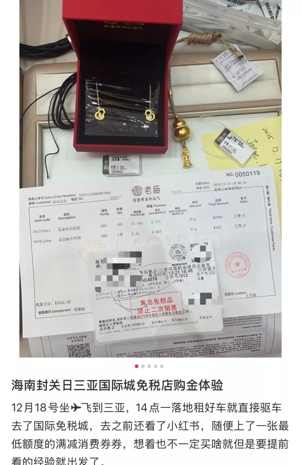 就拿12月22日的金价来举例。内地金店周大福挂牌价已冲破 1368元/克。而海南免税店同品牌挂牌价 1194元/克,立省160+。这还没算大额的政府消费券和商场活动折扣。